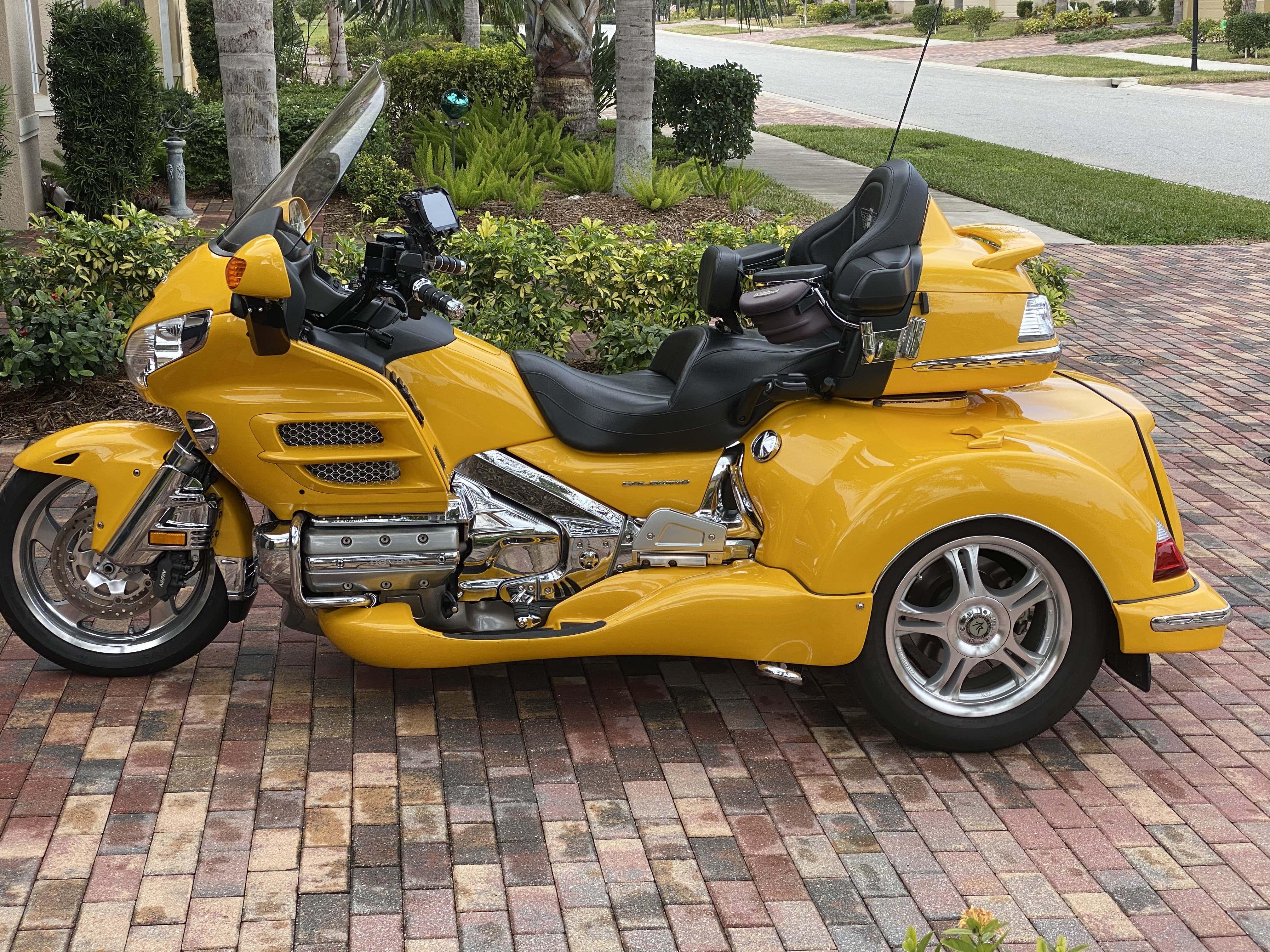 Honda Goldwing Trike For Sale - 19900 The Villages 2005 35th Anniversary Edition Yellow Goldwing 1800 Motorcycle converted to a Trike with a 2005 Lehman Monarch II Conversion Kit is being offered for saleThe Trike has 38100 miles on the odometer and is pristine condition.